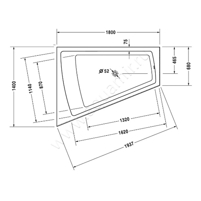 - Диаметр слива - 52 мм