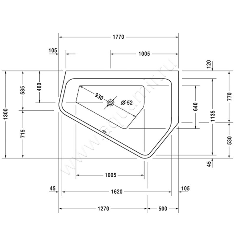 - Диаметр слива - 52 мм