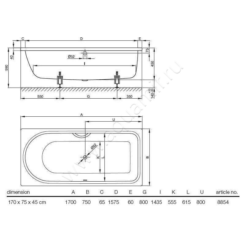 Стальная ванна Bette Ocean 170x75, артикул товара 8854-000 AR,PLUS, страна производства Германия.
