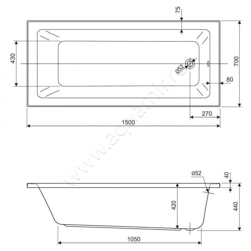 - Диаметр слива - 52 мм