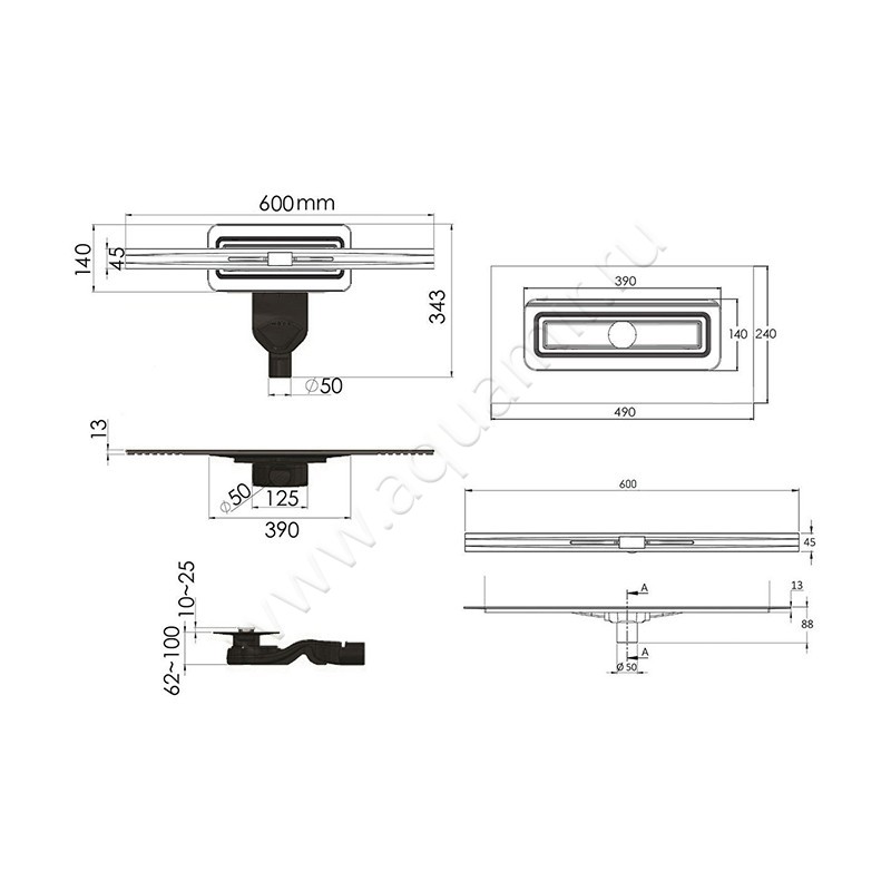 | Вид сливной решетки: | С щелью для воды |