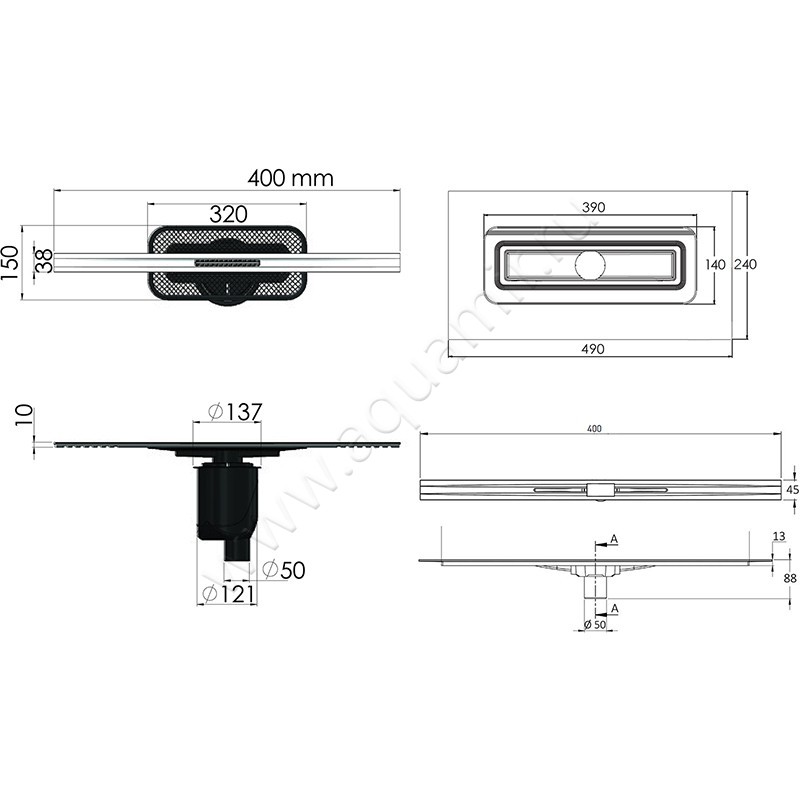 | Вид сливной решетки: | С щелью для воды |