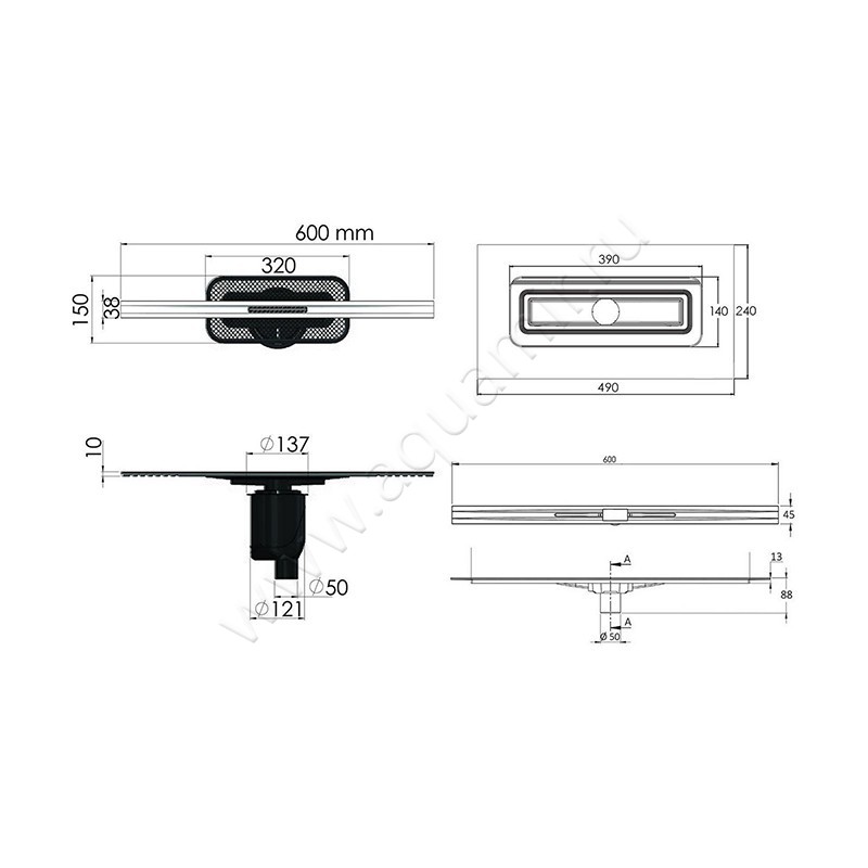 | Оснащение: | Опоры, Защитная заглушка, Решетка, Сифон |