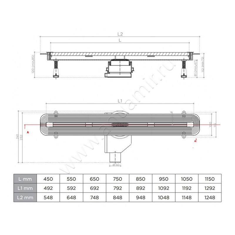 - Диаметр слива - 50 мм