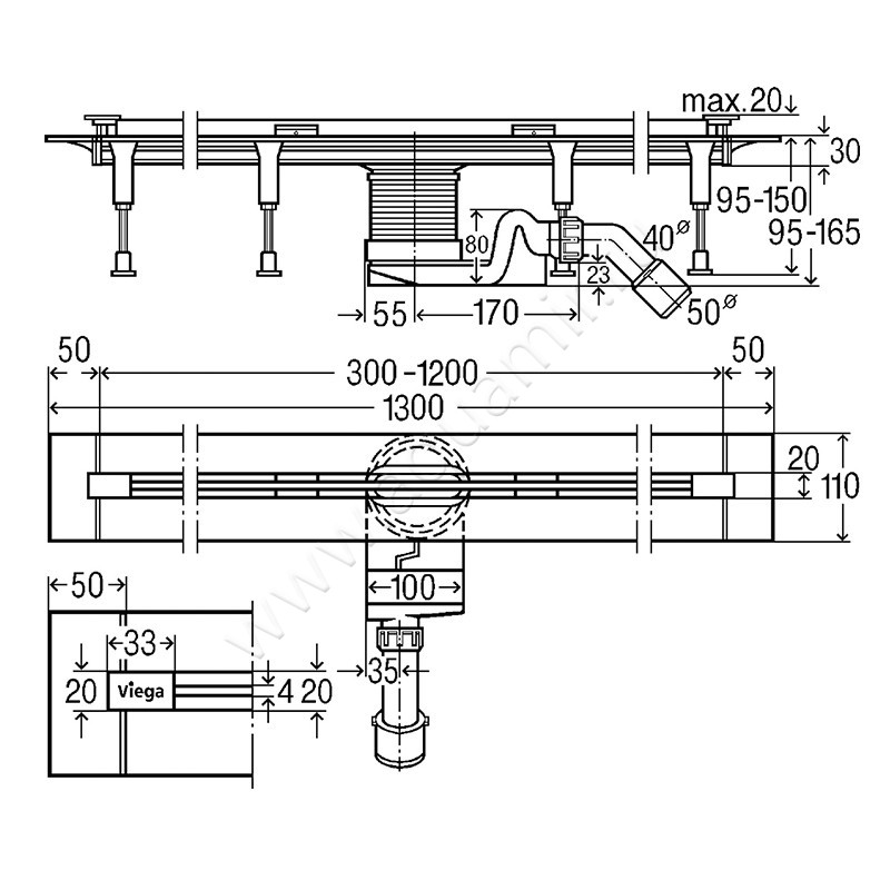 Душевой лоток с решеткой Viega Advantix Vario 130 см, артикул товара 704360, страна производства Германия.