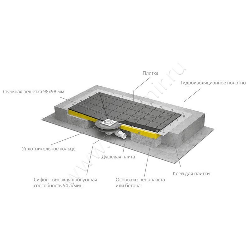 - Монтаж - врезка в пол с размещением около стены