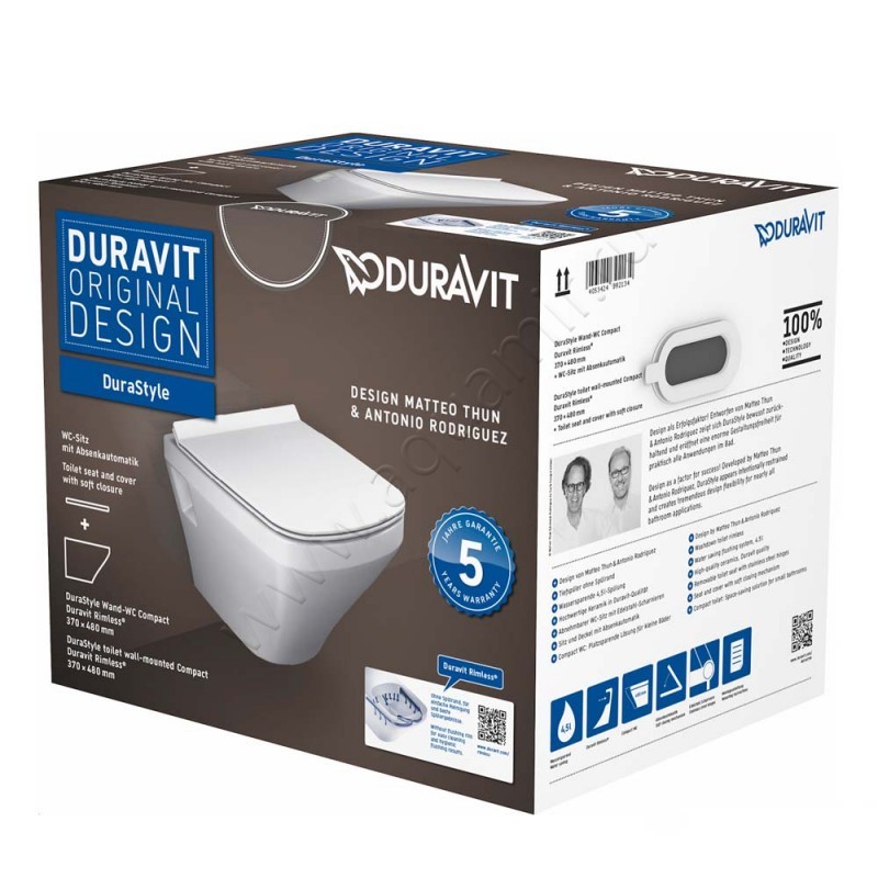 Унитаз подвесной Duravit DURASTYLE с крышкой микролифт, 48 см, белый, артикул товара 45710900A1, страна производства Германия.