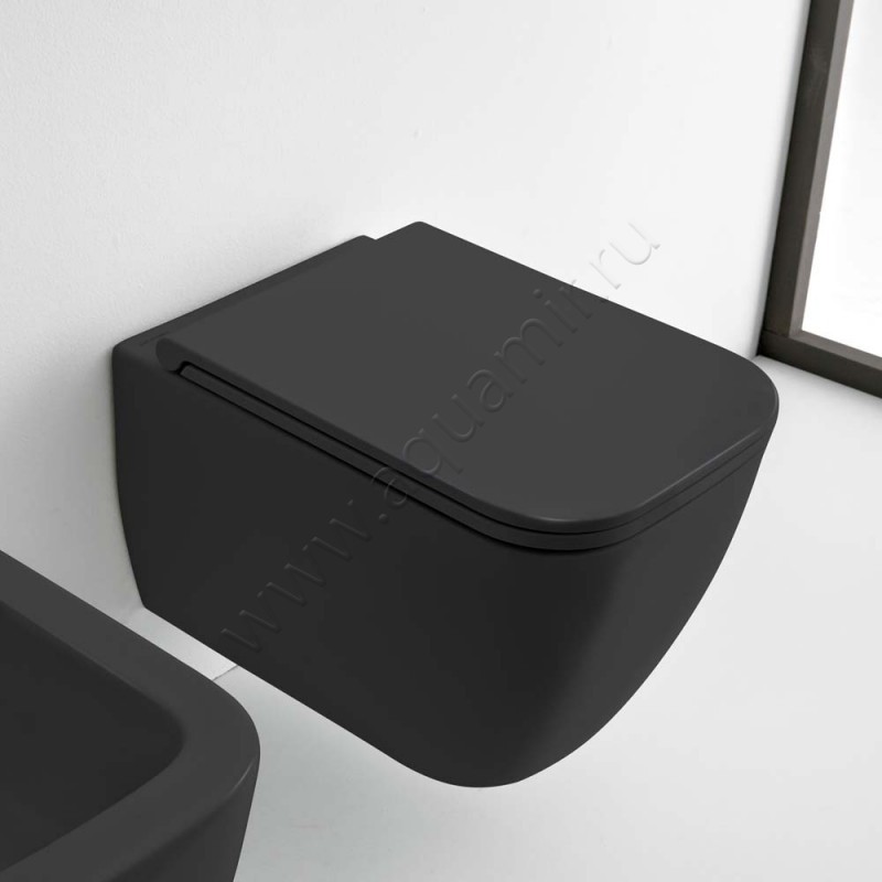 Унитаз подвесной Scarabeo TEOREMA 2.0 52 см, безободковый, черный матовый, артикул товара 5126CL49BK, страна производства Италия.