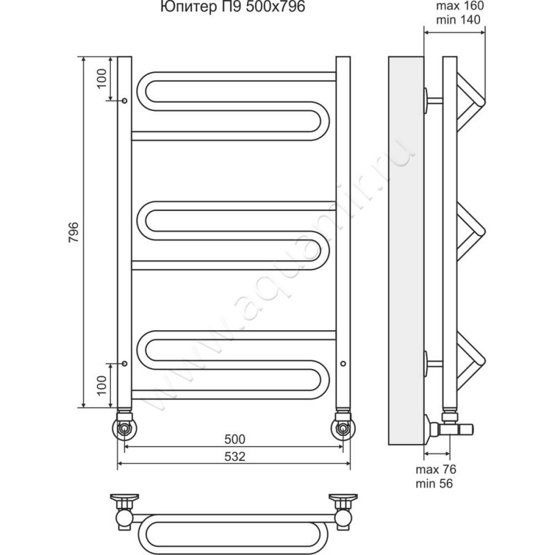 Полотенцесушитель водяной Terminus Юпитер П9 500х796 (4620768888854)