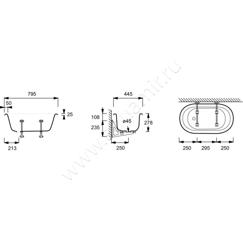 - Установка смесителя на борт ванны не предусмотрена