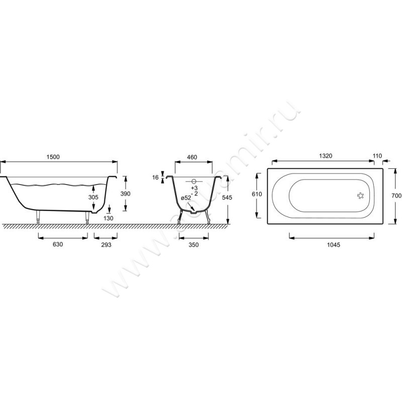 - Предусмотрена установка смесителя на борт ванны