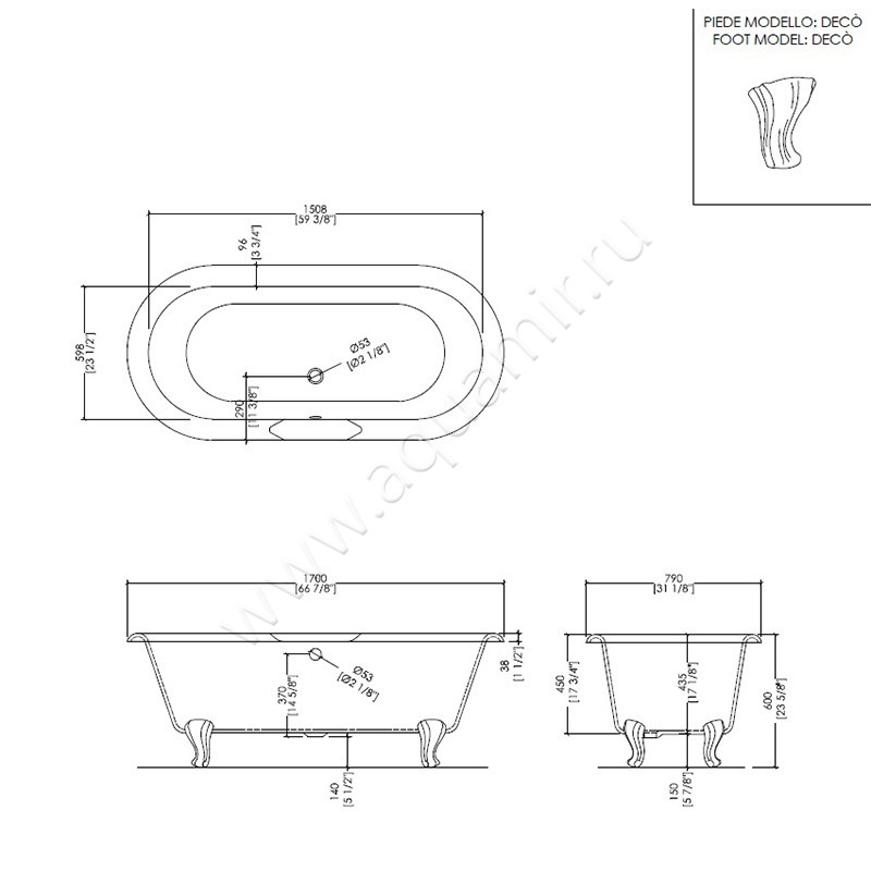 - Ванна отдельностоящая/свободностоящая