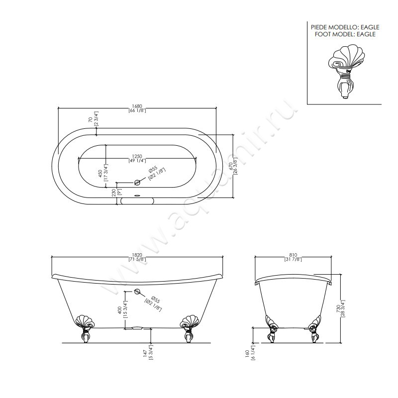 - Ванна отдельностоящая/свободностоящая