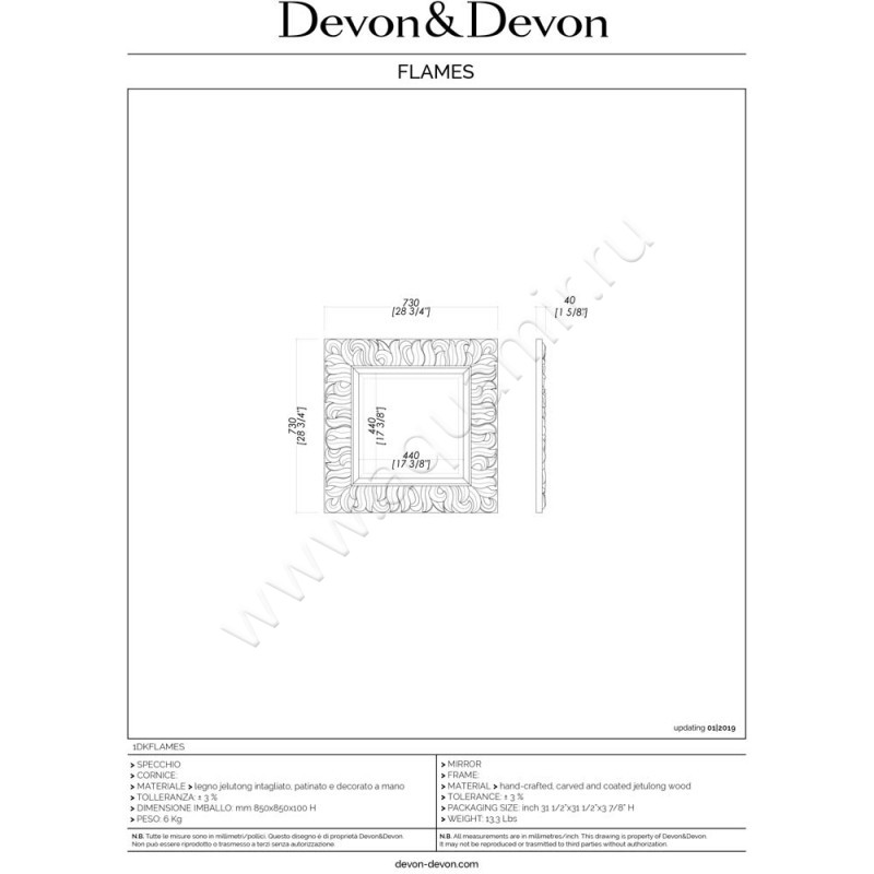 Зеркало Devon & Devon Flames , артикул товара 1DKFLAMES, страна производства Италия.