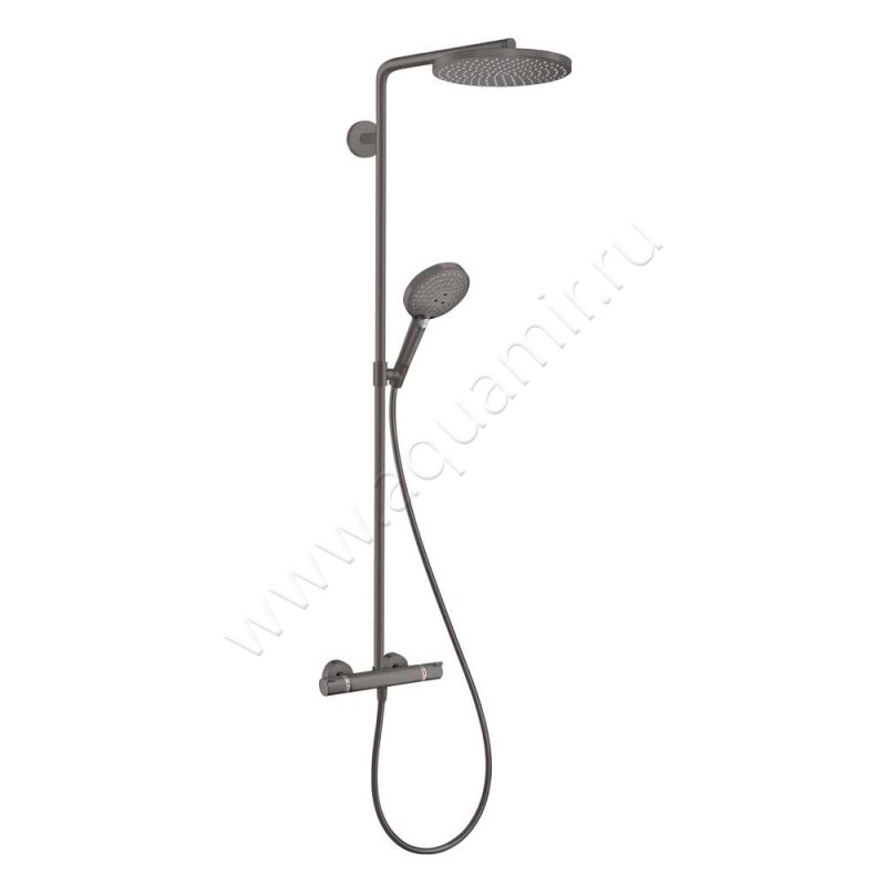 Термостатическая душевая стойка Hansgrohe Raindance Select S в цвете чёрный хром, артикул товара 27633340, страна производства Германия.