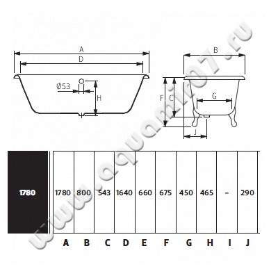 Чугунная ванна Recor Carlton 178x80, артикул товара CARLTON 178, страна производства Португалия.