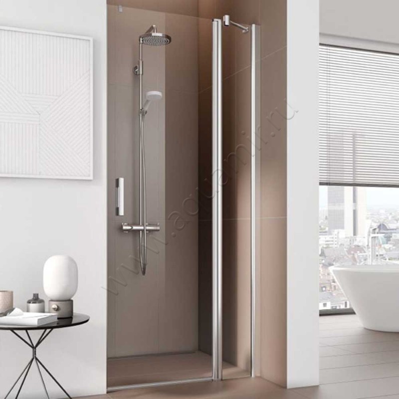 Маятниковая душевая дверь в нишу с фиксированным элементом Kermi Pega в серебристом цвете (PE1FR08018VAK)