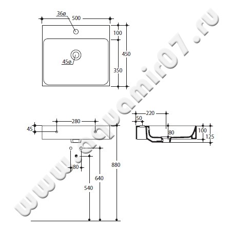 Рукомойник подвесной Kerasan Cento 50 см (3530 01)