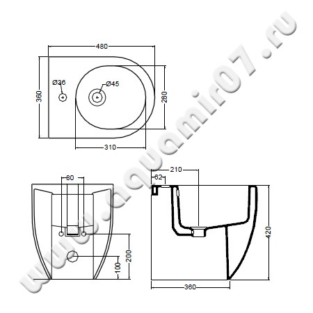 - Горизонтальный выпуск (для подключения к канализационному стояку, расположенному в стене на высоте 20 см от уровня пола и выше)