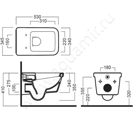 - Модель унитаза предназначена для подвешивания на стену при помощи системы инсталляции
