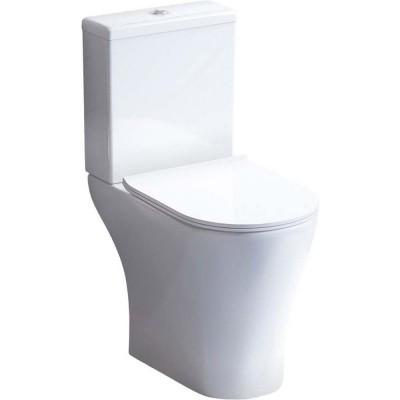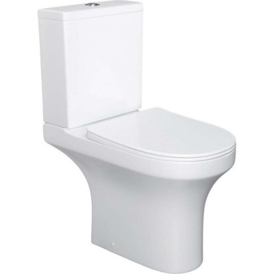 (Укороченный, с горизонтальным смывом, санфарфор, анти-всплеск, с безободковым смывом, в комплекте с сиденьем)