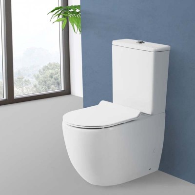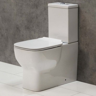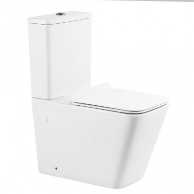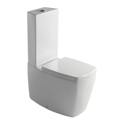 (Короткий, с горизонтальным сливом, керамика фарфор, анти-всплеск, подвод воды снизу, в комплекте с сиденьем)